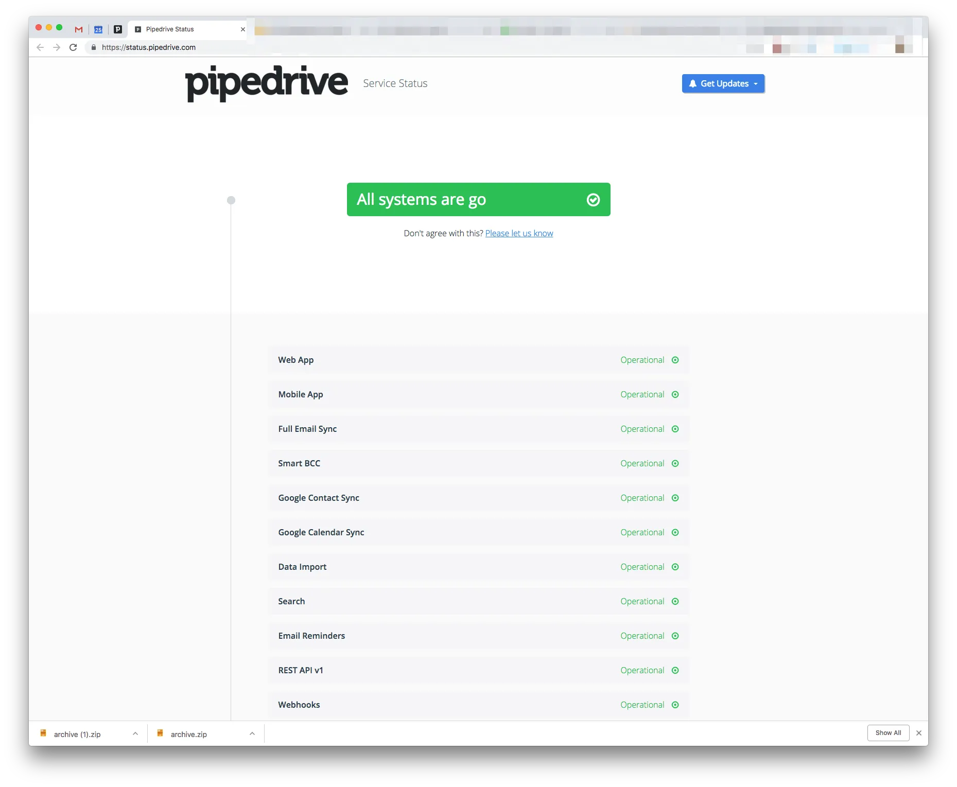 最新のステータスページを確認すると、全てのサービスが正常稼働と表示されています。あてにならないですね。